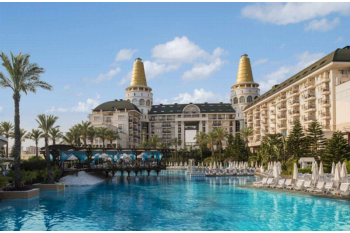 LiggingDit strandhotel bevindt zich vlakbij het brede zandstrand. Het openbaar vervoer (een bushalte) bevindt zich op ca. 60 m afstand van het hotel. In de nabije omgeving van het hotel (ca. 50 m) vindt u veelzijdige mogelijkheden om te winkelen, evenals talrijke restaurants, diverse bars, cafés en omvangrijke andere mogelijkheden om u te vermaken. Het vlakbij gelegen stadscentrum kunt u goedkoop met het openbaar vervoer of gemakkelijk met de auto bereiken. Hier vindt u nog meer interessante vrijetijdsmogelijkheden. Naar de luchthaven van Antalya is het ongeveer 18 km. HotelfaciliteitenHet hotel biedt op 6 verdiepingen 390 niet-rokerskamers die met een lift bereikbaar zijn. De receptie is 24 uur per dag geopend. Het verblijf is ingericht met een bagagedepot, een kluis, een wisselkantoor en een geldautomaat. Via Wi-Fi hebben de gasten toegang tot het internet. De tourdesk biedt ondersteuning bij het boeken van excursies. Het verblijf beschikt over meerdere voor gehandicapten toegankelijke vrijetijdsbestedingen. Het hotel beschikt over faciliteiten voor rolstoelgebruikers. Voor filmliefhebbers heet het in de bioscoop: "En…actie!". Een supermarkt en andere winkels zijn voorhanden om heerlijk te winkelen of te flaneren. Op het terrein van het hotel bevinden zich een mooie tuin en een fraaie speelplaats. Tot de overige voorzieningen van het verblijf behoren een krantenkiosk, een tv-ruimte, een speelkamer en een bibliotheek. Desgewenst beschikken de reizigers over parkeerplaatsen. Tot de aangeboden diensten horen een 24-uurs beveiligingsdienst, een autoverhuur, een medische dienst, een roomservice tegen betaling, een wasservice, een kapper, een muntwasserette en een eigen shuttlebus. Om de omgeving te verkennen, biedt de fietsverhuur de noodzakelijke uitrusting. In het zakelijke gedeelte (businesscenter) zijn fax en projector voorhanden. KamersAirconditioning, een verwarming en een ventilator zorgen voor een aangename luchtcirculatie in de kamers. De gasten kunnen vanaf het balkon of het terras van het uitzicht op zee genieten. De kamers beschikken over een tweepersoonsbed, een kingsize bed of een slaapbank. Ook babybedjes en extra bedden kunnen worden klaargezet. Bovendien zijn een kluis, een minibar en een bureau beschikbaar. Faciliteiten als een mini-koelkast en een thee-/koffiezetapparaat veraangenamen het verblijf. Voor vakantiecomfort zorgen een telefoon met directe buitenlijn, een tv met satelliet-/kabelontvangst, een wekker en Wi-Fi (kosteloos). Tot de extra´s van de kamers behoren pantoffels. De badkamers zijn uitgerust met een douche, een bad en een bidet. Voor het dagelijks gebruik zijn een föhn, een make-upspiegel en badjassen verkrijgbaar. Bovendien zijn rolstoelvriendelijke kamers met een barrièrevrije badkamer te boeken. Voor ouders met kinderen zijn gezinskamers beschikbaar.Sport/entertainmentIn een van de 6 buiten- en binnenzwembaden kunnen de gasten de heerlijke balans tussen sport en ontspanning vinden. Het bereik met zoetwaterzwembaden en deels verwarmde baden beschikt bovendien over pierenbadjes. Pure ontspanning in het bubbelbad, plezier op de waterglijbaan en verfrissende drankjes bij de zwembadbar - de gasten zullen veel waterpret hebben. Een zonneterras, ligstoelen en parasols zijn voorhanden. Het hotel biedt een omvangrijk buitensportprogramma met fietsen/mountainbiken, tennis, jeu de boules, beachvolleybal, volleybal, basketbal en boogschieten aan. De gasten van het hotel krijgen een uitgebreid watersportprogramma aangeboden waaronder windsurfen, waterfietsen, kanovaren, catamaranzeilen, snorkelen, aquarobics en aquafitness en tegen betaling waterskiën, jetskiën, motorboot varen, bananenboot varen, zeilen en duiken. Het verblijf biedt eveneens tal van mogelijkheden voor sportieve indooractiviteiten zoals een fitnessstudio, tafeltennis, badminton, darts, yoga, gymnastiek en aerobics en tegen betaling biljart en bowling. Het hotel beschikt over een wellnessgedeelte met een spa, een sauna, een stoombad, een hamam, een schoonheidssalon, thalassobehandelingen, ayurvedische behandelingen en ook (tegen betaling) massagebehandelingen. Tot de andere vrijetijdsmogelijkheden horen een animatieprogramma, een miniclub, livemuziek en een disco. Eten en drinkenEen eetzaal, een koffiehuis en een bar behoren tot de culinaire faciliteiten. In een niet-rokersrestaurant met airconditioning krijgen de gasten verschillende specialiteiten voorgeschoteld. Verfrissende drankjes aan de strandbar staan garant voor feelgood momenten. Er kan all-inclusive worden geboekt. Tot de bijzondere extra's van de all-inclusive vakantiegangers behoren onder andere brunch en snacks. Een lekker ontbijt levert energie voor de dag, voor de lunch en het diner gebruiken de gasten het afwisselende buffet. Dieetgerechten, vegetarische gerechten en kindermenu's worden op aanvraag bereid. Daarnaast stelt het hotel speciale menu's beschikbaar. CreditcardsDe volgende creditcards worden in het verblijf geaccepteerd: Visa en MasterCard.