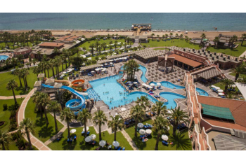 LiggingMegasaray Club Belek ligt direct aan het strand en op slechts 9 km van het centrum van Belek, waar je kunt genieten van lokale charme en cultuur. De luchthaven van Antalya ligt op 30 km afstand, zodat je snel op je bestemming bent. HotelfaciliteitenGelegen aan de prachtige kust van Belek, biedt Megasaray Club Belek een ideale bestemming voor zowel ontspanning als avontuur. Geniet van het eigen zandstrand met een steiger, 5 buitenzwembaden, 3 glijbanen en uitgebreide spa faciliteiten, allemaal in een milieuvriendelijke en modern aangepaste Seltsjoekse architectuur. In het spa- en wellnesscentrum kun je volledig tot rust komen met een sauna, een Turks stoombad of een heerlijke massage. Voor sportieve gasten zijn er maar liefst 16 tennisbanen en een binnenzwembad, zodat je je ook tijdens je vakantie kunt blijven bewegen. KamersDe kamers van Megasaray Club Belek zijn uitgerust met airconditioning, een flatscreen-tv, minibar en een privébalkon. De en-suite badkamers zijn voorzien van gratis toiletartikelen, zodat je in alle comfort kunt ontspannen. Eten en drinkenElke dag begint met een uitgebreid ontbijt, gevolgd door een open buffet voor lunch en diner. Voor een speciale ervaring kun je dineren in een van de 6 Ã -la-carterestaurants die een gevarieerde keuken aanbieden, van Chinese en Italiaanse gerechten tot Mexicaanse, Ottomaanse specialiteiten en zeevruchten. De bars serveren een breed scala aan zowel alcoholische als alcoholvrije dranken.