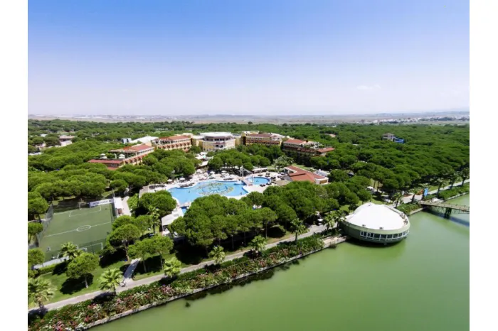 LiggingRobinson Nobilis ligt direct aan een golfbaan, ideaal voor liefhebbers van de golfsport. Het strand bevindt zich op loopafstand. Het centrum van Belek ligt op ca. 8 km HotelfaciliteitenVoor verkoeling biedt Robinson Nobilis binnen- en buitenzwembaden, omringd door ligbedden, parasols en een handdoekenservice. Volledige ontspanning vind je in het wellnesscentrum met sauna, stoombad en relaxruimte. Tegen betaling zijn massages en schoonheidsbehandelingen beschikbaar. Kinderen vermaken zich in het kinderbad of doen mee met activiteiten van de miniclub. Sportieve gasten kunnen terecht in de fitnessruimte of meedoen aan een potje beachvolleybal. Voor tennis of mountainbiken geldt een toeslag. Gasten van Robinson Nobilis maken gratis gebruik van WiFi in de openbare ruimtes. Overige (betaalde) faciliteiten zijn o.a. een oppasservice, speelhal, kapper, winkeltjes en buggyverhuur. KamersDe kamers in het tuingebouw (type 1) zijn standaard voorzien van een telefoon, gratis WiFi, tv, airco, kluisje, koelkastje en een badkamer met douche, toilet, föhn en make-upspiegel. Buiten geniet je van een balkon of terras met zitje. Wie liever in het hoofdgebouw verblijft, boekt een type 2- of type 4-kamer. Deze kamers zijn vergelijkbaar qua faciliteiten en beschikken altijd over een balkon. De bungalows (type 1) zijn ruimer en hebben een woon-/slaapkamer, aparte slaapkamer, airco, tv, gratis WiFi, kluisje, koelkastje, badkamer met douche, toilet, föhn, make-upspiegel en een terras met ligbedden. Type 2-bungalows zijn nog ruimer en hebben een extra slaapkamer. De familiekamers type 1 liggen in het tuingebouw en beschikken over twee aparte slaapkamers, twee badkamers en een balkon of terras. Type 2-familiekamers bieden dezelfde faciliteiten, maar met één badkamer.Eten en drinkenIn de buffetrestaurants worden dagelijks gevarieerde maaltijden geserveerd. Regelmatig zijn er thema-avonden of galadiners. In het strandrestaurant proef je heerlijke visgerechten. Voor drankjes kun je terecht bij meerdere bars. Verblijf je o.b.v. all inclusive, dan zijn ontbijt, lunch en diner in buffetvorm inbegrepen, evenals koffie, thee, frisdrank en geselecteerde alcoholische dranken. Let op: voor sommige restaurants is reserveren verplicht. Drankjes kunnen in sommige gevallen tegen betaling zijn. Tijdens het diner geldt een dresscode; mannen dienen een lange broek te dragen.