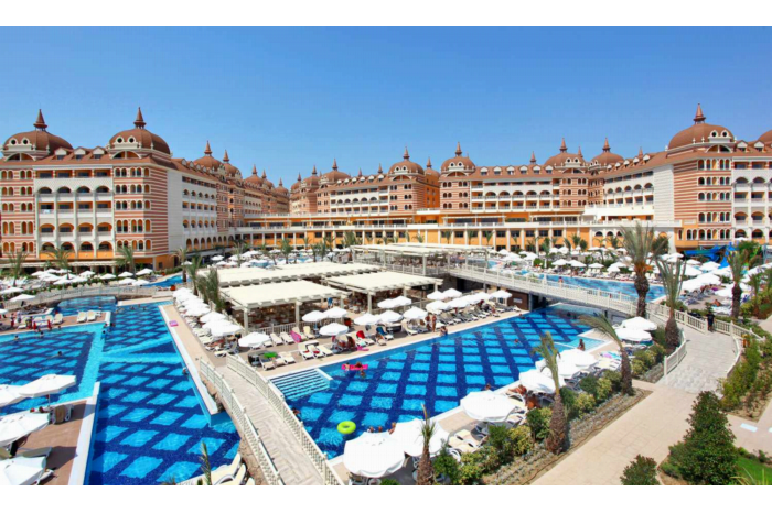 LiggingDit resort, ideaal voor strandvakantiegangers en gezinnen, bevindt zich direct aan de zee, in Side, naar het centrum van Side is het ca. 9 km. Tot aan de luchthaven Antalya (AYT) is het circa 40 km. HotelfaciliteitenDe gasten beleven een ontspannen verblijf in de 579 niet-rokerskamers. Het vriendelijke personeel aan de receptie is graag bij alle vragen behulpzaam. Tot de service van het verblijf hoort een bagagedepot. In de openbare ruimtes (kosteloos) is Wi-Fi verkrijgbaar. Op het terrein van het vakantiecomplex bevinden zich een mooie tuin en een fraaie speelplaats. Tot de overige voorzieningen van het resort behoort een speelkamer. Onder de beschikbare voorzieningen bevinden zich een oppasservice tegen betaling, een autoverhuur, een medische dienst, een 24-uursroomservice tegen betaling, een wasservice en een kapper. In het zakelijke gedeelte (businesscenter) zijn projector en flipchart/stiften voorhanden. Lezingen, presentaties of congressen kunnen worden georganiseerd in een van de 4 conferentieruimtes. KamersVoor een aangename luchtcirculatie in de kamers zorgt airconditioning. Tot de basisuitrusting van de meeste kamers behoort een balkon. Voor kinderen kunnen op aanvraag kinderbedjes ter beschikking worden gesteld. Bovendien zijn een kluis en een minibar beschikbaar. Ook een thee-/koffiezetapparaat behoort tot de standaardvoorzieningen. Voor vakantiecomfort zorgen een telefoon met directe buitenlijn, satelliettelevisie en Wi-Fi (kosteloos). De bedden op de kamers zijn bovendien van verschillende kussens voorzien. In de badkamers bevinden zich een föhn, badjassen en een telefoon voor dagelijks gebruik. Als extra service genieten de gasten in de badkamers van cosmetische producten. 5 rolstoelvriendelijke kamers kunnen worden geboekt. Voor ouders met kinderen zijn 152 gezinskamers beschikbaar.Sport/entertainmentHet ruime zwembadgedeelte met 2 buitenzwembaden belooft afkoeling en recreatie. Op koele dagen kan het binnenzwembad worden gebruikt (kosteloos). De kinderen kunnen zich in een van de 3 pierenbadjes uitleven. Pure ontspanning in het bubbelbad (kosteloos), plezier op de waterglijbaan en verfrissende drankjes bij de zwembadbar - de gasten zullen veel waterpret hebben. Op het zonneterras zijn ligstoelen en parasols beschikbaar. Wie lekker wil bewegen, kan van jeu de boules, beachvolleybal en midgetgolf genieten. Tot het strand- en watersportaanbod behoort aquarobics (kosteloos). Het verblijf biedt eveneens tal van mogelijkheden voor sportieve indooractiviteiten zoals een fitnessstudio, tafeltennis, darts, gymnastiek en aerobics en tegen betaling biljart en bowling. Het resort beschikt over een wellnessgedeelte met een spa, een sauna, een stoombad en een hamam en ook - tegen een extra toeslag - een beautyfarm en massagebehandelingen. Een miniclub, een minidisco, livemuziek en een disco garanderen volop recreatieplezier. Eten en drinken9 restaurants, een bar, een lobbybar en een pianobar behoren tot de culinaire faciliteiten. Verfrissende drankjes aan de strandbar staan garant voor feelgood momenten. Er kan een all-inclusive special deal worden geboekt. Aangeboden worden ontbijt, middagmaaltijd en diner. Dieetgerechten en kindermenu's worden op aanvraag bereid. Bovendien zijn speciale menu's en snacks verkrijgbaar. Alcoholische en alcoholvrije dranken zijn voor de gasten inclusief. CreditcardsDe volgende creditcards worden geaccepteerd: Visa en MasterCard.