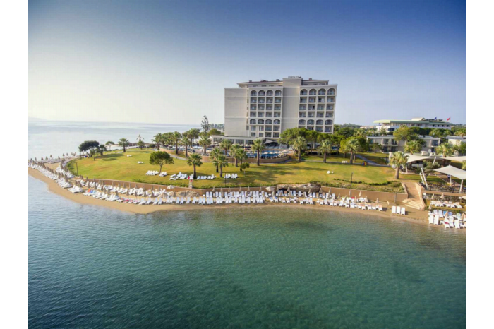 LiggingHet vakantiecomplex, ideaal voor strandvakantiegangers, gezinnen, jonge mensen en singles, bevindt zich direct aan de zee, in Didim, naar het centrum van Didim is het ca. 7 km. HotelfaciliteitenIn 2023 werd het resort gemoderniseerd. Het complex beschikt over 475 kamers en over liften. Aan de receptie in de ontvangstruimte staat het vriendelijke personeel de gasten met raad en daad bij. De kluis bewaakt waardevol eigendom van de gasten. Via Wi-Fi hebben de gasten toegang tot het internet (kosteloos). Een supermarkt en een souvenirwinkel en andere winkels zijn voorhanden om heerlijk te winkelen of te flaneren. Op het terrein van het verblijf bevinden zich een mooie tuin en een fraaie speelplaats. Tot de overige voorzieningen van het resort behoort een speelkamer. Onder de beschikbare voorzieningen bevinden zich een 24-uurs beveiligingsdienst, een oppasservice tegen betaling, een kinderopvang, een autoverhuur, roomservice, een wekdienst, een wasservice, een kapper, een piccolo-service en een hotelarts. Ter ondersteuning van het zakendoen is een fax voorhanden. KamersAirconditioning en een verwarming zorgen voor een prettig luchtklimaat in de kamers. Op het balkon of het privé-terras van de meeste kamers kunnen de gasten ontspannen en van de blik op zee genieten. De kamers beschikken over een tweepersoonsbed of een slaapbank. Er zijn aparte slaapkamers aanwezig. Ook babybedjes en extra bedden kunnen worden klaargezet. Bovendien zijn een kluis en een minibar beschikbaar. Ook een thee-/koffiezetapparaat behoort tot de standaardvoorzieningen. Voor vakantiecomfort zorgen een telefoon, een televisie en Wi-Fi (kosteloos). In de wooneenheden staan pantoffels klaar voor de gasten. In de badkamer, van een douche voorzien, vinden de gasten een föhn en badjassen. Het vakantiecomplex beschikt over gezinskamers en niet-rokerskamers.Sport/entertainmentNaast binnen- en buitenzwembaden is er een zone met kinderzwembaden. Daarnaast brengen verkwikkende drankjes aan de zwembadbar/snackbar en een waterglijbaan alle waterratten in de allerbeste stemming. Op het zonneterras zijn ligstoelen en parasols beschikbaar. Wie lekker wil bewegen, kan van tennis, beachvolleybal en basketbal genieten. Watersportliefhebbers kunnen zich met jetskiën en kanovaren vermaken. Het verblijf biedt tal van sportmogelijkheden in het indoorgedeelte aan zoals bijvoorbeeld een fitnessstudio, tafeltennis, darts, gymnastiek en aerobics en tegen betaling ook biljart. In het resort worden diverse wellnessaanbiedingen zoals bijvoorbeeld spa, sauna, een stoombad, hamam, een schoonheidssalon en massagebehandelingen aangeboden. Een miniclub, een minidisco, livemuziek en een disco garanderen volop recreatieplezier. Eten en drinkenEen eetzaal, een bar en een lobbybar behoren tot de culinaire faciliteiten. Er kan all-inclusive worden geboekt. Tot de voordelen van een all-inclusive verblijf horen niet alleen een brede keuze uit alcoholische en alcoholvrije dranken en een gratis vulling van de minibar, maar ook culinaire producten zoals snacks. Optioneel kan ook worden gekozen. Vegetarische gerechten, kindermenu's en halal maaltijden worden naar wens toebereid, bovendien krijgen de gasten tegen toeslag dieetgerechten geserveerd. CreditcardsDe volgende creditcards worden geaccepteerd: Visa en MasterCard.