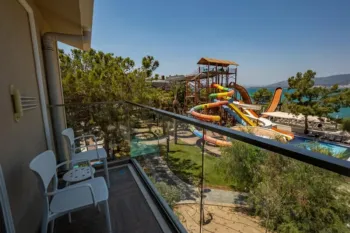 LiggingDit vakantiedorp, ideaal voor gezinnen, ligt in Didim, direct aan de zee, in een rustige omgeving. HotelfaciliteitenIn het vakantiedorp werd in 2021 gemoderniseerd. Er is keuze uit 332 kamers. Aan de receptie in de ontvangsthal staat meertalig personeel met raad en daad bij. Tot de faciliteiten van het vakantiecomplex behoren een bagagedepot en een kluis. In het verblijf is Wi-Fi voorhanden. Het complex beschikt over faciliteiten voor rolstoelgebruikers. Naast een supermarkt en een souvenirwinkel zijn andere winkels voorhanden. Op het terrein van het complex bevinden zich een mooie tuin en een fraaie speelplaats. Tot de overige voorzieningen van het vakantiecomplex behoren een tv-ruimte en een speelkamer. Wie met de auto komt, kan hem op het parkeerterrein van het verblijf parkeren. Onder de beschikbare voorzieningen bevinden zich een oppasservice, een kinderopvang, een medische dienst, roomservice, een wasservice, een kapper, een piccolo-service en een hotelarts. KamersAirconditioning en een verwarming zorgen voor een aangename luchtcirculatie in de kamers. Een balkon met zeezicht van opzij nodigt in de meeste gevallen tot heerlijk vertoeven uit. De kamers beschikken over een tweepersoonsbed en een slaapbank. Er zijn aparte slaapkamers aanwezig. Ook babybedjes en extra bedden kunnen worden klaargezet. Bovendien zijn een kluis, een minibar en een bureau beschikbaar. Faciliteiten als een mini-koelkast en een thee-/koffiezetapparaat veraangenamen het verblijf. Voor vakantiecomfort zorgen een telefoon, een televisie en Wi-Fi. In de badkamer, van een douche en een bad voorzien, vinden de gasten een föhn en een make-upspiegel. Als extra service genieten de gasten in de badkamers van cosmetische producten. Bovendien zijn rolstoelvriendelijke kamers met een barrièrevrije badkamer te boeken. Het complex beschikt over gezinskamers en niet-rokerskamers.Sport/entertainmentAangenaam zwemplezier garanderen heerlijk verwarmde openluchtzwembaden, ook gevuld met zoutwater (kosteloos). Voor de kleine waterratten is er een speciaal zwemcomplex voorhanden. Daarnaast brengen verkwikkende drankjes aan de zwembadbar/snackbar en een waterglijbaan alle waterratten in de allerbeste stemming. Ook een terras met ligstoelen en parasols is voorhanden. Sportieve afwisseling wordt geboden door de vele verschillende activiteiten die in het vakantiecomplex worden aangeboden zoals tennis, jeu de boules, beachvolleybal, volleybal, basketbal, midgetgolf en boogschieten. Met waterskiën, windsurfen, jetskiën, waterfietsen, bananenboot varen, kanovaren, duiken, aquarobics en aquafitness voelen zich ook watersportliefhebbers helemaal op hun gemak. De gasten in het verblijf beschikken over vele indoorsportmogelijkheden zoals bijvoorbeeld de fitnessstudio, tafeltennis, biljart, darts, gymnastiek en aerobics. Het complex beschikt over een wellnessgedeelte met een spa, een sauna en een hamam en ook - tegen een extra toeslag - een schoonheidssalon en massagebehandelingen. Externe organisatoren bieden een schoonheidssalon aan. In het complex zijn er voortreffelijke mogelijkheden om te ontspannen en van de vrije tijd te genieten, zoals bijvoorbeeld een animatieprogramma, een miniclub, een minidisco en livemuziek. Eten en drinkenEen eetzaal, een koffiehuis en een lobbybar behoren tot de culinaire faciliteiten. De gasten genieten van hun gerechten in een aangename ambiance in het restaurant (buffet en airconditioning). Verfrissende drankjes aan de strandbar staan garant voor feelgood momenten. Het vakantiecomplex biedt een overnachting incl. ontbijt en all-inclusive als boekingsmogelijkheid op het gebied van eten en drinken aan. Bij het ontbijt, de lunch en het diner genieten de gasten van een lekker en uitgebreid buffet. Glutenvrije maaltijden en vegetarische gerechten worden op aanvraag bereid. Daarnaast stelt het verblijf snacks beschikbaar. Een bijzondere attractie is live cooking. Het complex beschikt over een assortiment alcoholische en alcoholvrije dranken. CreditcardsDe volgende creditcards worden in het vakantiecomplex geaccepteerd: Visa en MasterCard.