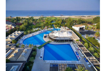 LiggingDit strandhotel bevindt zich op 15 km van het centrum van Manavgat, op 90 km van Antalya en op 81 km van de luchthaven van Antalya. HotelfaciliteitenIn een 6 verdiepingen tellend hoofdgebouw en 7 bijgebouwen staan de gasten 579 niet-rokerskamers en 239 tweepersoonskamers ter beschikking. Aan de receptie in de ontvangsthal staat meertalig personeel met raad en daad bij. De gasten van het resort ontvangen bij aankomst een welkomstdrankje. Tot het voorzieningenaanbod hoort een bagagedepot. In het verblijf is Wi-Fi voorhanden (kosteloos). De tourdesk biedt ondersteuning bij het boeken van excursies. Het complex beschikt over meerdere voor gehandicapten toegankelijke vrijetijdsbestedingen. Het resort beschikt over faciliteiten voor rolstoelgebruikers en 3 liften. Een souvenirwinkel en andere winkels zijn voorhanden om heerlijk te winkelen of te flaneren. Tot de overige voorzieningen van het verblijf behoren een tv-ruimte en een speelkamer. Een parkeergarage behoort tot een van de faciliteiten van de gasten. Onder de beschikbare voorzieningen bevinden zich een 24-uurs beveiligingsdienst, op aanvraag een oppasservice tegen betaling, een autoverhuur, een medische dienst, een transferservice, roomservice, een wasservice, een kapper, een muntwasserette, een piccolo-service en een eigen shuttlebus. In het zakelijke gedeelte zijn fax en kopieerapparaat beschikbaar. Lezingen, presentaties of congressen kunnen worden georganiseerd in een van de 2 conferentieruimtes. KamersDe kamers beschikken over airconditioning, woonkamer, keuken en badkamer. Tot de basisuitrusting van de meeste kamers behoort een balkon. Bovendien zijn een kluis en een minibar beschikbaar. Ook een thee-/koffiezetapparaat behoort tot de standaardvoorzieningen. Bovendien zijn een telefoon met directe buitenlijn, een flatscreen-tv met satellietzenders en Wi-Fi (kosteloos) beschikbaar. In de badkamer vinden de gasten een bad. Voor het dagelijks gebruik zijn een föhn, een make-upspiegel, badjassen en een telefoon verkrijgbaar. Voor extra comfort in de badkamers zorgen cosmetische producten. Het resort beschikt over 114 gezinskamers en rokerskamers.Sport/entertainmentHet ruime zwembadgedeelte met 3 buitenzwembaden belooft afkoeling en recreatie. Op koele dagen kan het binnenzwembad worden gebruikt. De kinderen kunnen zich in een van de 2 pierenbadjes uitleven. Een waterglijbaan zorgt voor zwemplezier bij jong en oud, een zwembadbar levert de verfrissende drankjes en versterking voor tussendoor. Echt optimaal van de vakantie genieten kan op het zonneterras met ligstoelen en parasols. Door de vele verschillende activiteiten die in het verblijf worden aangeboden zoals jeu de boules, beachvolleybal, volleybal en boogschieten en tegen betaling tennis, wordt hier voor veel afwisseling gezorgd. Met windsurfen, waterfietsen, snorkelen en aquarobics voelen zich ook watersportliefhebbers helemaal op hun gemak. De gasten in het complex beschikken over vele indoorsportmogelijkheden zoals bijvoorbeeld de fitnessstudio, tafeltennis, darts, gymnastiek en aerobics. De vele opties in het wellnessgedeelte bieden ontspanning waaronder een sauna en een hamam. Tegen betaling staan de gasten massagebehandelingen ter beschikking. Tot de andere vrijetijdsmogelijkheden horen een miniclub, livemuziek en een disco. Eten en drinkenEen eetzaal, een koffiehuis, een bar en een lobbybar behoren tot de culinaire faciliteiten. Gastvrijheid en een gezellige ambiance wacht op de gasten in 8 niet-rokersrestaurants. Verfrissende drankjes aan de strandbar staan garant voor feelgood momenten. Een vroege vogels en uitslapers ontbijt, middag- en avondeten verleiden met een afwisselend aanbod van gerechten. Dieetgerechten en kindermenu's worden op aanvraag bereid. Daarnaast stelt het resort snacks beschikbaar. Het verblijf beschikt over een assortiment alcoholische en alcoholvrije dranken. CreditcardsDe volgende creditcards worden geaccepteerd: Visa en MasterCard.