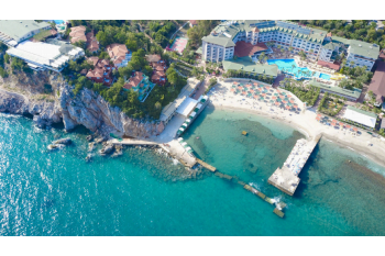 LiggingPerfect voor ouders met kinderen ligt dit strandhotel op ongeveer 3 km van het centrum van Konakli. HotelfaciliteitenDe gasten kunnen zich in 398 niet-rokerskamers heerlijk op hun gemak voelen. Aan de receptie in de ontvangsthal staat Engelstalig personeel met raad en daad bij. Een bagagedepot en een geldautomaat behoren tot de faciliteiten van het resort. In het vakantiecomplex is Wi-Fi voorhanden (tegen toeslag). Naast een supermarkt en een souvenirwinkel zijn andere winkels voorhanden. Op het terrein van het verblijf bevinden zich een mooie tuin en een fraaie speelplaats. Tot de aangeboden faciliteiten behoren een 24-uurs beveiligingsdienst, een autoverhuur, een medische dienst, een transferservice, een piccolo-service en een hotelarts. Ter ondersteuning van communicatie of andere zakelijke activiteiten kan een fax beschikbaar worden gesteld. KamersAirconditioning en een verwarming zorgen voor een prettig luchtklimaat in de kamers. De gasten kunnen vanaf het balkon of het terras van het uitzicht op zee genieten. De kamers beschikken over een tweepersoonsbed. Ook babybedjes en extra bedden kunnen worden klaargezet. Een minibar en een bureau en tegen betaling een kluis zijn eveneens aanwezig. Voor vakantiecomfort zorgen een telefoon, satelliettelevisie en Wi-Fi (tegen toeslag). In de badkamer, van een douche voorzien, vinden de gasten een föhn en een telefoon. Bovendien zijn rolstoelvriendelijke kamers met een barrièrevrije badkamer te boeken. Het resort beschikt over 120 gezinskamers en rokerskamers.Sport/entertainmentHet zwembadcomplex met 3 buitenzwembaden en 2 pierenbadjes voor kinderen is uitermate geschikt voor actieve ontspanning en aquarobics training. Daarnaast brengen verkwikkende drankjes aan de zwembadbar/snackbar en een waterglijbaan alle waterratten in de allerbeste stemming. Ook een terras met ligstoelen en parasols is voorhanden. Wie lekker wil bewegen, kan van tennis en basketbal genieten. Tot het strand- en watersportaanbod behoort duiken. Een fitnessstudio, tafeltennis en darts maken deel uit van het sport- en recreatieaanbod van het verblijf. Het resort beschikt over een wellnessgedeelte met vele ontspanningsmogelijkheden zoals bijvoorbeeld een sauna en een hamam. Daarnaast is er tegen betaling een spa, een beautyfarm en massagebehandelingen. Een miniclub, een minidisco en een disco garanderen volop recreatieplezier. Eten en drinkenEr is een grote keuze uit gastronomische voorzieningen zoals bv. 3 restaurants, een eetzaal, een bar en een lobbybar. Verfrissende drankjes aan de strandbar staan garant voor feelgood momenten. Een vroege vogels en uitslapers ontbijt, middag- en avondeten verleiden met een afwisselend aanbod van gerechten. Daarnaast stelt het verblijf snacks beschikbaar. Het complex beschikt over een assortiment alcoholische en alcoholvrije dranken. CreditcardsDe volgende creditcards worden in het resort geaccepteerd: Visa en MasterCard.
