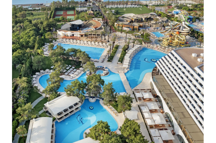LiggingHet Titanic Deluxe Lara ligt op minder dan 13 km van de Luchthaven van Antalya en op slechts 5 minuten lopen van de zandstranden van Antalya. HotelfaciliteitenGelegen in een indrukwekkend gebouw in de vorm van een cruise schip, biedt Titanic Deluxe Lara een luxe ervaring aan de kust van Antalya. In de volledig uitgeruste spa kun je genieten van uitgebreide lichaamsbehandelingen, waaronder massages en aromatherapie-sessies. Er worden ook verschillende huidverzorgingsbehandelingen aangeboden voor de ultieme ontspanning. Er is een enorm buitenzwembad met meerdere glijbanen voor jong en oud. Ook is er een voetbalveld, 4 tennisbanen en een basketbalveld aanwezig voor de sportieve gasten. Ook is er een bowlingbaan & gamecenter aanwezig. Slecht weer? Geen probleem want u kunt ook gebruik maken van het binnen zwembad. Zo kunt u in dit hotel 365 dagen per jaar genieten van uw welverdiende vakantie! KamersDe kamers van Titanic Deluxe Lara zijn voorzien van airconditioning en grote ramen die uitkijken over de zee. Elke kamer heeft comfortabele lounge stoelen op het private balkon, zodat je volop kunt genieten van het panoramische uitzicht. Er zijn meerdere kamertypes in het hotel aanwezig waaronder een standaard tweepersoonskamer, junior suite, familiekamer en kamers met directe toegang tot het zwembad. Eten en drinkenGeniet in het buffetrestaurant of in 1 van de 5 a-lacarte restaurants van de heerlijkste gerechten. Ook zijn er 13 bars op het complex aanwezig zodat u op ieder moment van de dag kunt genieten van een lekker drankje.