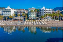 Labranda Mares MarmarisLiggingHet wandelhotel, ideaal voor strandvakantiegangers, sportieve en avontuurlijke vakantiegangers, gezinnen, jonge mensen, singles en natuurliefhebbers, ligt in Marmaris, direct aan de zee, in een