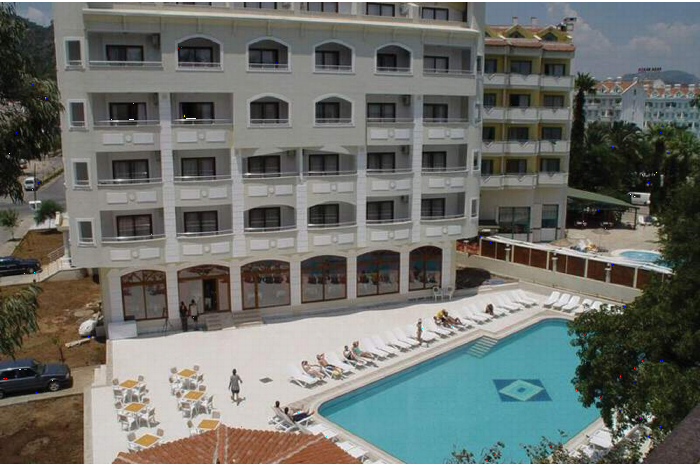 LiggingHet hotel is ideaal gelegen op slechts 30 meter van het strand en vlakbij alle winkels, restaurants en bars. Het ligt ook vlak bij de donderdagse bazar en het waterpark. De hoofdweg ligt op 20 meter afstand en daar vinden de gasten ook regelmatige minibusdiensten naar Icmeler en Marmaris. Hier is ook een taxistandplaats. Voor wie liever loopt is er de strandpromenade die bijna tot in het centrum van Marmaris loopt in de ene richting (ongeveer 1,5 km) en naar Icmeler in de andere richting. HotelfaciliteitenGraag heet het hotel de gasten in een hotel met 5 verdiepingen met een lift en 95 tweepersoonskamers welkom. De receptie in de ontvangsthal is 24 uur per dag geopend zodat de gast flexibel kan in- en uitchecken. Het verblijf is ingericht met een bagagedepot, een kluis en een wisselkantoor. In de openbare ruimtes is Wi-Fi verkrijgbaar. De tourdesk biedt ondersteuning bij het boeken van excursies. Het hotel beschikt over een aantal voor gehandicapten toegankelijke voorzieningen. Rolstoelvriendelijke faciliteiten zijn beschikbaar. Naast een supermarkt zijn andere winkels voorhanden. Op het terrein van het verblijf bevinden zich een mooie tuin en een fraaie speelplaats. Tot de overige voorzieningen van het hotel behoort een tv-ruimte. Wie met de auto komt, kan hem (kosteloos) op het parkeerterrein van het hotel parkeren. Onder de beschikbare voorzieningen bevinden zich een 24-uurs beveiligingsdienst, een autoverhuur, een medische dienst, een transferservice, roomservice, een wekdienst, een wasservice, een kapper en een muntwasserette. Sportieve gasten die het omliggende landschap op de fiets willen verkennen, zullen de fietsverhuur op prijs stellen. Bij het zakendoen kan van het businesscenter gebruik worden gemaakt en staat een fax ter beschikking. KamersIn de kamers zijn airconditioning en verwarming voorhanden. Tot de basisuitrusting van de meeste kamers behoort een balkon. De met vloerbedekking uitgeruste kamers beschikken over een tweepersoonsbed. Ook babybedjes en extra bedden kunnen worden klaargezet. Bovendien zijn een kluis, een minibar en een bureau beschikbaar. Ook zijn een koelkast en een mini-koelkast aanwezig. Verder kunnen de gasten gebruikmaken van een strijkset en een broekenpers. Bovendien zijn een telefoon met directe buitenlijn, een tv met satelliet-/kabelontvangst en Wi-Fi (kosteloos) beschikbaar. De badkamer, uitgerust met een douche en een bad, beschikt over een föhn. Voor extra comfort in de badkamers zorgen cosmetische producten. Het verblijf beschikt over niet-rokerskamers.Sport/entertainmentHet zwemcomplex met buitenbaden en zone voor kinderen is geschikt voor actieve ontspanning en aquarobicstrainingen. Verfrissende drankjes bij de zwembadbar/snackbar en aangename ontspanning in de whirlpool brengen alle waterratten in vervoering. Op het zonneterras staan comfortabele ligstoelen en schaduwrijke parasols klaar voor gebruik. Actieve gasten kunnen veel plezier beleven bij het fietsen/mountainbiken. Het hotel heeft in het indoorgedeelte ook veel activiteiten voor sportliefhebbers in petto zoals een fitnessstudio, tafeltennis, biljart, gymnastiek en aerobics. In het hotel worden diverse wellnessaanbiedingen zoals bijvoorbeeld spa, sauna, een stoombad, hamam, massagebehandelingen en een zonnebank aangeboden. Een animatieprogramma en een miniclub bieden mogelijkheden tot vrijetijdsbesteding. Eten en drinkenEr is een grote keuze uit gastronomische voorzieningen zoals bv. een restaurant, een bar en een pub. Het verblijf biedt een overnachting incl. ontbijt, halfpension en all-inclusive als boekingsmogelijkheid op het gebied van eten en drinken aan. Een continentaal ontbijtbuffet garandeert een voortreffelijke start van de dag. Als ontbijt en diner genieten de gasten van een royaal samengesteld buffet. Daarnaast stelt het hotel snacks beschikbaar. Het hotel beschikt over een assortiment alcoholische en alcoholvrije dranken. CreditcardsDe volgende creditcards worden geaccepteerd: American Express, Visa en MasterCard.