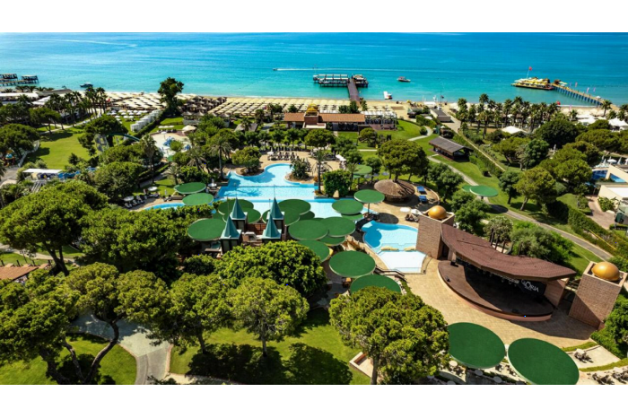 LiggingHet hotel ligt direct aan het strand en de hoofdstraat van Belek ligt op ca. 500 meter. De luchthaven van Antalya ligt op zo'n 30 minuten rijden. HotelfaciliteitenGeniet van de zoetwaterzwembaden & het spa-centrum. Ook is er een fitnessruimte en tennisbaan aanwezig. Ook kunt u gebruik maken van een bowlingbaan en bioscoop. Ook biedt dit hotel uitgebreide faciliteiten die speciaal zijn ontworpen voor kinderen en jonge gasten, waaronder een miniclub met filmvertoningen en een ruime keuze aan bordspellen. Er zijn ook verschillende zwembaden voor kinderen. Ook is er een speciaal kinderrestaurant en speeltuin. Dit zorgt ervoor dat je kinderen zich geen moment vervelen. Voor extra gemak zijn babysitservice en kinderwagens op aanvraag beschikbaar tegen een toeslag. Babybedjes, babybadjes en hoge kinderstoelen worden gratis verstrekt. Andere babyfaciliteiten zoals flessenwarmers en blenders zijn beschikbaar om het voorbereiden van maaltijden gemakkelijker te maken. KamersJe hebt onder andere de beschikking over airco, telefoon, tv, een kluis, een balkon of terras, en een minibar (mogelijk tegen betaling). De badkamer is uitgerust met een bad/douche, toilet en föhn. Bovendien kun je gratis gebruik maken van WiFi op de kamer.Voor wat meer ruimte en luxe kun je tegen een toeslag kiezen voor een van de junior suites. Deze suites zijn ruimer en bestaan uit een woon-/slaapkamer en een aparte slaapkamer. De deluxe suites bieden extra comfort en beschikken over twee badkamers, waarvan één met een jacuzzi. Eten en drinkenGloria Verde Resort biedt een uitstekende keuze aan eet- en drinkmogelijkheden. Er is een hoofdrestaurant alsmede twee à la carte restaurants (Frans en Oosters) en verschillende bars om van te genieten.Boek je een verblijf op basis van all inclusive, dan zijn ontbijt, lunch en diner in buffetvorm inbegrepen, evenals diverse dranken en snacks. Bovendien kun je één keer per week (afhankelijk van beschikbaarheid en met reservering) dineren in een van de à la carte restaurants.
