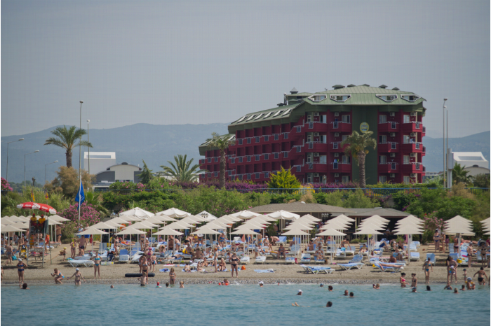 LiggingDit luxe hotel ligt buiten Alanya, maar is met het openbaar vervoer zeer goed bereikbaar. Het hotel wordt slechts door een straat van het strand gescheiden, dat te voet gemakkelijk te bereiken is. Restaurants en bars bevinden zich op ca. 3 km afstand, naar mogelijkheden om te winkelen en clubs is het ongeveer 4 km. HotelfaciliteitenIn 2021 werd het resort gemoderniseerd. Het complex met een lift beschikt over 345 kamers. Engelstalig personeel bij de receptie in de ontvangsthal is hulpvaardig bij het in- en uitchecken. Tot het serviceaanbod behoren een bagagedepot en een kluis. De gasten kunnen met Wi-Fi in internet surfen. Het verblijf beschikt over faciliteiten voor rolstoelgebruikers. Het is mogelijk om boodschappen te doen in een supermarkt en een souvenirwinkel en in andere winkels. Op het terrein van het resort bevinden zich een mooie tuin en een fraaie speelplaats. Tot de overige voorzieningen van het complex behoren een krantenkiosk en een speelkamer. Wie met de auto komt, kan hem (kosteloos) op het parkeerterrein van het verblijf parkeren. Onder de beschikbare voorzieningen bevinden zich een 24-uurs beveiligingsdienst, een autoverhuur, een medische dienst, een wekdienst, een wasservice, een kapper, een piccolo-service en een hotelarts. Ter ondersteuning van het zakendoen zijn flipchart/stiften voorhanden. KamersVoor een aangename luchtcirculatie in de kamers zorgt airconditioning. De gasten kunnen vanaf het balkon of het terras van het uitzicht op de stad genieten. De kamers beschikken over een tweepersoonsbed. Er zijn aparte slaapkamers aanwezig. Kinderbedjes worden op aanvraag gratis ter beschikking gesteld. Bovendien zijn een kluis, een minibar en een bureau beschikbaar. Ook een thee-/koffiezetapparaat behoort tot de standaardvoorzieningen. Voor vakantiecomfort zorgen een telefoon, een tv met satelliet-/kabelontvangst en Wi-Fi (kosteloos). Daarnaast kunnen de gasten gebruikmaken van de eindschoonmaakservice. Tot de extra´s van de kamers behoren pantoffels. In de badkamer vinden de gasten een douche. Voor het dagelijks gebruik zijn een föhn, een make-upspiegel en een telefoon verkrijgbaar. Bovendien zijn 3 rolstoelvriendelijke kamers met een barrièrevrije badkamer te boeken. Voor ouders met kinderen zijn 35 gezinskamers beschikbaar.Sport/entertainmentEen openluchtzwembad en een overdekt zwembad nodigen uit tot ontspannen zwemplezier. In een pierenbadje kunnen kinderen zich heerlijk uitleven. Daarnaast brengen verkwikkende drankjes aan de zwembadbar/snackbar en een waterglijbaan alle waterratten in de allerbeste stemming. Ook een terras met ligstoelen en parasols is voorhanden. Met aquarobics en tegen betaling windsurfen, jetskiën, kanovaren, aquafitness en parasailing, komen ook de vrienden van de watersport volledig aan hun trekken. De gasten in het resort beschikken over vele indoorsportmogelijkheden zoals bijvoorbeeld de fitnessstudio, darts, gymnastiek en aerobics. Het verblijf beschikt over een wellnessgedeelte met een sauna en een hamam en ook - tegen een extra toeslag - een spa, een beautyfarm, een schoonheidssalon en massagebehandelingen. Externe organisatoren bieden een spa, een schoonheidssalon en massagebehandelingen aan. Een animatieprogramma, een miniclub, een minidisco en livemuziek garanderen volop recreatieplezier. Eten en drinkenEen bar en een lobbybar behoren tot de culinaire faciliteiten. De culinaire service wordt verzorgd door een buffetrestaurant met airconditioning en voor niet-rokers. Verfrissende drankjes aan de strandbar staan garant voor feelgood momenten. Het resort biedt all-inclusive en een all-inclusive special deal als boekingsmogelijkheid op het gebied van eten en drinken aan. Een continentaal ontbijtbuffet stimulereert uit bed te komen. 's Middags en 's avonds maken de gasten gebruik van het buffet. Dieetgerechten, glutenvrije maaltijden, vegetarische gerechten, kindermenu's en halal maaltijden worden op aanvraag bereid. Daarnaast stelt het verblijf snacks beschikbaar. Alcoholische en alcoholvrije dranken zijn voor de gasten inclusief. CreditcardsDe volgende creditcards worden in het resort geaccepteerd: Visa en MasterCard.