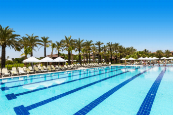 Geniet van een all inclusive topvakantie aan de Turkse Rivièra bij Hotel Calimera Serra Palace. Dit 5-sterrenhotel in Kizilagac is een geliefde plek onder zonaanbidders en kinderen. Calimera Serra Palace ligt direct aan het strand en heeft een grandioos waterpark, dat met 10 glijbanen een walhalla is voor wie van waterpret houdt. Natuurlijk kun je neerstrijken op het zandstrand, maar ook in de groene tuin is het heerlijk verblijven. Neem een verkoelende duik in een van de 5 zwembaden om vervolgens lekker bij te kleuren op een van de zonneterrassen. Zin om actief te zijn? Dat komt goed uit: Calimera Serra biedt volop sportmogelijkheden. Een potje tennis, fitness, beachvolleybal... En ook het animatieteam zorgt ervoor dat je je geen moment verveelt. Er worden geregeld thema-avonden en spetterende shows georganiseerd. Kortom, een topbestemming voor het hele gezin! Zie jij jezelf al genieten van een heerlijke vakantie aan de Turkse Rivièra? Boek dan snel jouw verblijf bij Hotel Calimera Serra!