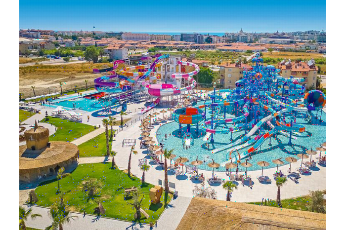 Vraag je aan een échte waterrat hoe zijn droomvakantie eruit ziet, dan is Dream Water World het antwoord. Wát een glijbanen! Zowel de waaghalzen als de allerkleinsten zijn er wel even zoet mee. Even bijkomen doe je op het strand of gewoon lekker op het zonneterras - mét een verkoelend all inclusive drankje in je hand.Dit 5-sterrenhotel in Kumkoy bestaat pas sinds 2022, maar wist al vele harten te veroveren. Boek snel je verblijf bij Dream Water World en ervaar het zelf!