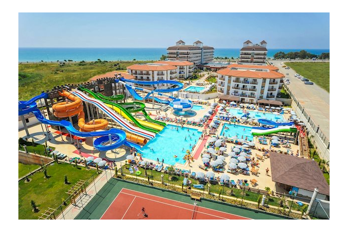 Hoeveel waterglijbanen passen er in jouw achtertuin? Eftalia Aqua Resort heeft er wel 12! Vanuit dit 4-sterrenresort in Alanya mag je namelijk gratis onbeperkt gebruik maken van het nabijgelegen aquapark. De kleintjes vermaken zich in het waterspuitpark en ook op het droge is er volop vertier voor jong en oud. Wat dacht je van de discotheek, gezellige Kids Club, en de vele sportfaciliteiten? Bij Eftalia Aqua Resort hoef je niet stil te zitten − maar het mág wel. Je verblijft all inclusive, dus plof vooral neer op een ligbedje om in alle rust te genieten van die gratis hapjes en drankjes.Klaar om te genieten van een spetterende familievakantie? Reserveer dan snel een kamer bij Eftalia Aqua Resort!