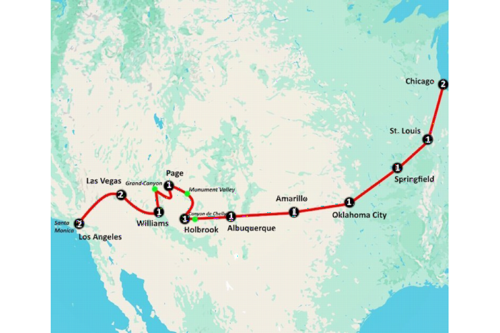 Maak u klaar voor een onvergetelijke groepsreis door Amerika langs de iconische Route 66, die in 2026 precies 100 jaar bestaat. Een bijzondere mijlpaal die deze reis nog unieker maakt. Tijdens deze 16-daagse rondreis volgt u de oorspronkelijke route van Chicago naar Santa Monica, dwars door acht staten en een eeuw aan Amerikaanse geschiedenis. Van wereldsteden als Chicago en Las Vegas tot legendarische landschappen als de Grand Canyon en Monument Valley: elke dag brengt een nieuw hoofdstuk uit de American Dream tot leven. Deze groepsreis combineert nostalgie met comfort, en laat u het échte Amerika beleven, samen met een groep gelijkgestemde reizigers.