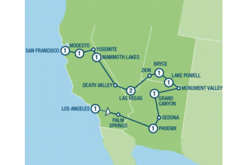 Wilt u in korte tijd de belangrijkste hoogtepunten zien van het zuidwesten van Amerika? Dan is dit de reis die u zoekt! U bezoekt maar liefst 6 verschillende Nationale Parken, namelijk Grand Canyon, Monument Valley, Bryce Canyon, Zion, Death Valley en het bekende Yosemite. Ook de meest bekende steden als Los Angeles, Las Vegas en San Francisco worden bezocht. Naast een gegarandeerd vertrek wordt deze populaire groepsreis door het westen van Amerika het gehele jaar uitgevoerd, zowel zomer als winter.