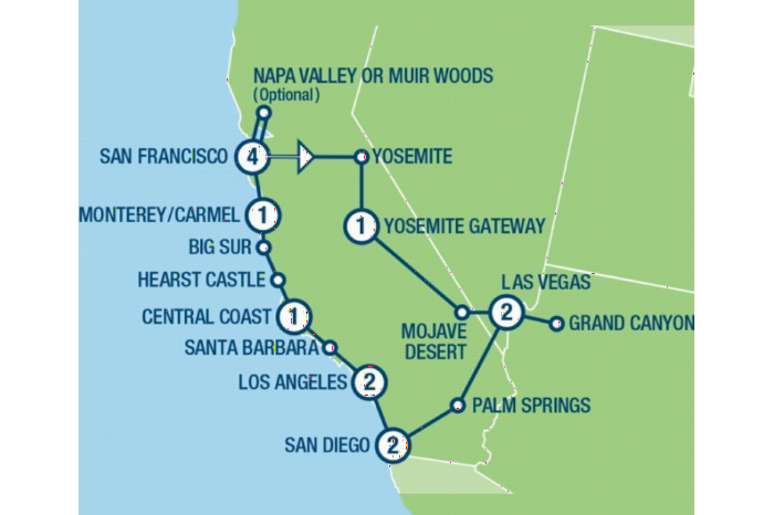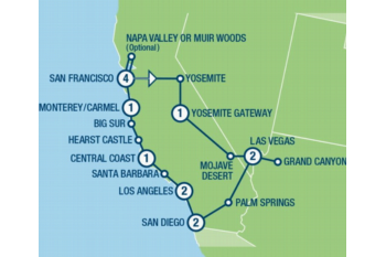 Tijdens deze groepsreis door West USA in een kleine groep van maximaal 20 personen ervaart u het leven in Californië en Nevada. U verblijft meerdere nachten in de meest bekende steden zoals San Francisco, Las Vegas, San Diego en Los Angeles. U leert deze steden per lokale gids ontdekken die u alle bekende maar ook minder bekende plekjes laat zien. Maar ook de meest bekende nationale parken zoals Yosemite en de Grand Canyon staan op het programma. U reis in een rustig tempo en heeft voldoende tijd om ook op eigen gelegenheid deze steden in het zuidwesten van Amerika te ontdekken.