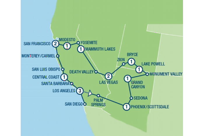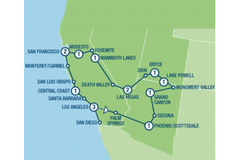 Wilt u in 2 weken tijd de belangrijkste hoogtepunten zien van het zuidwesten van Amerika? Dan is dit de reis die u zoekt! U bezoekt maar liefst 6 verschillende Nationale Parken, namelijk Grand Canyon, Monument Valley, Bryce Canyon, Zion, Death Valley en het bekende Yosemite. Ook de meest bekende steden als Los Angeles, Las Vegas en San Francisco worden uitgebreid bezocht. Naast een gegarandeerd vertrek wordt deze populaire groepsreis door het westen van Amerika het gehele jaar uitgevoerd, zowel zomer als winter.