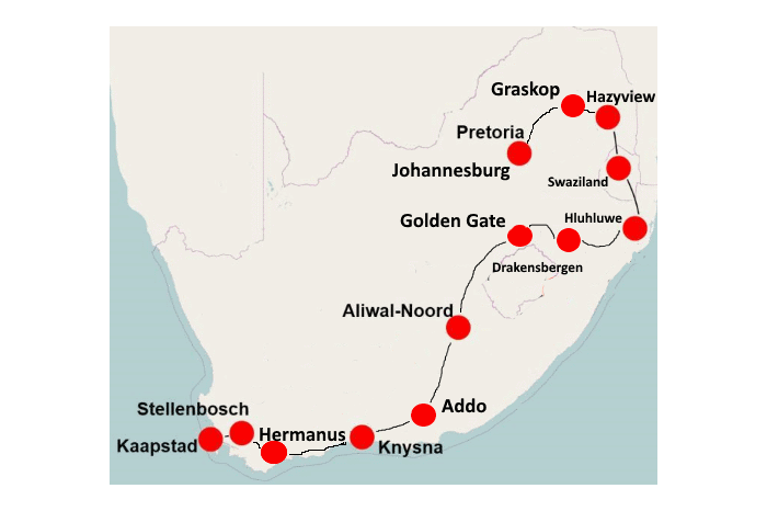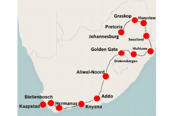 Tijdens deze autorondreis ziet u in korte tijd de vele hoogtepunten van het mooie en diverse Zuid-Afrika. U verblijft in gezellige Bed & Breakfast accommodaties, inclusief ontbijt.Vanuit Johannesburg reist u via de beroemde Panoramaroute naar Hazyview, één van de toegangspoorten van het Krugerpark, waar u voldoende tijd heeft om de Big Five te 'spotten'. Hierna rijdt u via het kleine koninkrijkje Swaziland naar het Hluwhluwe National Park. Via de indrukwekkende Drakensbergen en het Golden Gate Reservaat rijdt u terug naar de kust. Geniet van de vele leuke badplaatsjes van de Tuinroute. U verblijf ook in Hermanus, zodat u hier de gelegenheid heeft om walvis te spotten! U vervolgt uw reis naar Stellenbosch, waar u een bezoek kunt brengen aan één van de vele wijnboerderijen. Uiteraard eindigt uw reis in de wereldstad Kaapstad.