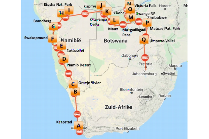 Bij deze avontuurlijke ontdekkingsreis van Kaapstad naar Johannesburg, via Namibië, Botswana en Zimbabwe, zult u vele kilometers maken om alle belangrijke hoogtepunten te ontdekken. U maakt verscheidene gamedrives in bekende nationale parken zoals Namib Desert, Etosha, Chobe en Hwange. Uniek maakt deze reis dat u 2 nachten slaapt aan de rand van de Okavango Delta en deze per traditionele kano (mokoro) ontdekt. Genietend van de sterrenhemel in Makgadikgadi Salt Pans bezoekt u de machtige Victoria watervallen in Zimbabwe. In het Matobo National Park kunt u te voet op zoek gaan naar neushoorns. U logeert veelal op unieke en soms afgelegen locaties waar niet iedere groepsreis komt. Een ware ontdekkingsreis dus door Zuidelijke Afrika.