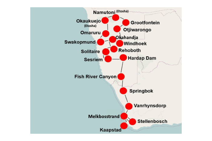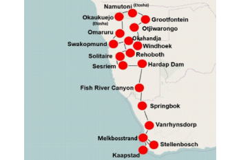 Het mooie Zuid-Afrika & Namibië ontdekken met uw eigen woning op wielen. Tijdens deze reis kunt u genieten van vrijheid en onafhankelijkheid, maar daarnaast profiteren van het feit dat de campings al voor u zijn gereserveerd, zodat u niet onnodig tijd kwijt bent aan het zoeken naar een overnachtingsplaats. Als eerste maakt u kennis met de wereldstad Kaapstad. Via Stellenbosch en Springbok rijdt u noordwaarts naar Namibië. Maak vervolgens kennis met het diverse Namibië met deze camperreis. Tijdens deze avontuurlijke reis bezoekt u de hoogtepunten van Namibië zoals de Fish River Canyon ('s werelds 2 na grootste canyon), de Rode duinen van de Sossusvlei, het historische stadje Swakopmund en op zoek naar de BIG FIVE in het Etosha Nationaal Park.