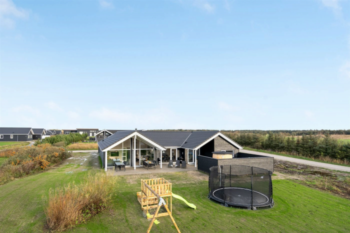 Vakantiehuis is geschikt voor 16 personen en 1 kinderen tot 3 jaar. De vakantiewoning heeft een oppervlakte van 217 m2 en is gebouwd in 2022. Het is toegestaan om 2 huisdieren mee te nemen. De vakantiewoning is uitgerust met een energiezuinige lucht-naar-water-warmtepomp. Er is vloerverwarming in het hele huis. De vakantiewoning heft Wasmachine. Wasdroge. Vriezer capaciteit van 240 liter. Er is daarnaast houtkachel. Voor de kleintjes 1 stukken Kinderstoel.De vakantiewoning is gelegen op een 2464 m² groot aangelegde tuin. Afstand tot de zee 800 m. Dichtstbijzijnde winkel 4000 m. Er is een golfbaan op een afstand van 9000 m. Bij de vakantiewoning hoort terras. Daarnaast is er een overdekt terras. Schommel. Trampoline. Speeltoren. Buitensauna. Buitendouche. Barbecue. Het huis heeft een stopcontact voor het opladen van een elektrische auto. CEE-stekker. Parkeerplaats bij het huis.Het binnenzwembad biedt de gelegenheid om heerlijk te spelen en gezellig samen te zijn.16 m lang en tot 1,4 m diep. Het water heeft een temperatuur tussen de 24 en 28 °C. Het binnenzwembad heeft een tegenstroominstallatie. Er is een waterglijbaan. Er is vloerverwarming in het zwembadgebied.Activiteitenruimte. Biljart. Pooltafe. Tafeltennis. Dart. Tafelvoetbal. Er zijn in totaal 6 slaapkamers. De slaapplaatsen zijn als volgt verdeeld: 4 slaapplaatsen in tweepersoonsbedden. 8 slaapplaatsen in eenpersoonsbedden.4 slaapplaatsen op matrassen. 4 van deze slaapplaatsen bevinden zich in de open slaapzolder.De keuken is uitgerust met koelkast Er is 1 inductiekookplaten, heteluchtoven, magnetron en vaatwasser. Er is 3 badkamers met douchehok en 3 toiletten. Er is vloerverwarming in 3 van de badkamers. Het buitenbubbelbad (standwater) biedt ontspanning aan 6 personen.In de vakantiewoning is aanwezig 2 smart-televises. Playstation5 1-3 deense zenders. Draadloos internet.
