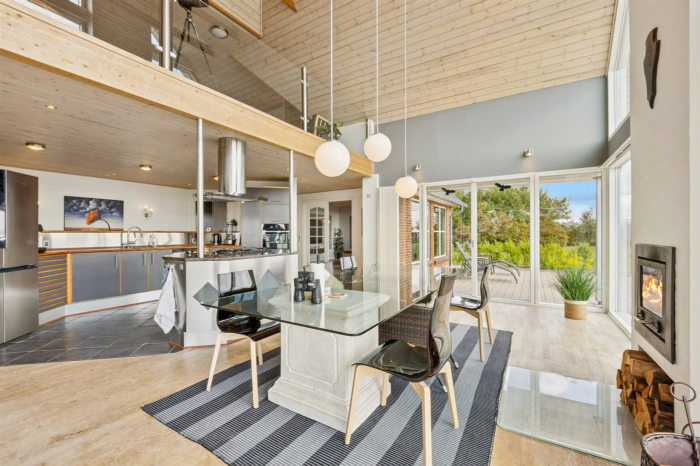 Vakantiehuis is geschikt voor 10 personen en 1 kinderen tot 3 jaar. De vakantiewoning heeft een oppervlakte van 302 m2, bestaat uit 2 verdiepingen, en is gebouwd in 2003. Het is niet toegestaan om huisdieren mee te nemen. De vakantiewoning is uitgerust met energiezuinige lucht-naar-lucht-warmtepomp. Er is vloerverwarming in het hele huis. Er is daarnaast houtkachel.De vakantiewoning is gelegen op een 4600 m² groot natuural grond. Afstand tot de zee 30000 m. Afstand tot de fjord 300 m. Dichtstbijzijnde winkel 3500 m. Bij de vakantiewoning hoort terras. Barbecue. Het huis heeft een stopcontact voor het opladen van een elektrische auto. Met 11 kW-laadvermogen. Parkeerplaats bij het huis.Er zijn in totaal 5 slaapkamers. De slaapplaatsen zijn als volgt verdeeld: 10 slaapplaatsen in tweepersoonsbedden. Verder is kinderbed ter beschikking. De keuken is uitgerust met amerikaanse koelkast Er zijn 2 keramische kookplaten Es is 4 gaspitten, heteluchtoven, magnetron en vaatwasser. Er is 2 badkamers; 1 met vloerverwarming en douchehok en 1 met badkuip.Het binnenbubbelbad (vulwater) biedt ontspanning aan 2 personen.In de vakantiewoning is aanwezig televisie. Geen tv-kanalen - alleen streaming. Draadloos internet.