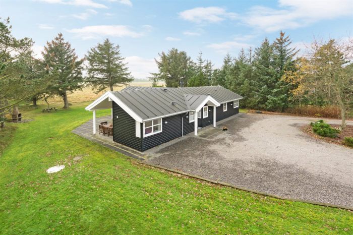 Vakantiehuis is geschikt voor 7 personen. De vakantiewoning heeft een oppervlakte van 115 m2 en is gebouwd in 2009. Het is niet toegestaan om huisdieren mee te nemen. Er is vloerverwarming in het hele huis. De vakantiewoning heft Wasmachine. Wasdroge. Vriezer capaciteit van 100 liter. Er is daarnaast houtkachel. Voor de kleintjes 1 stukken Kinderstoel.De vakantiewoning is gelegen op een 2000 m² groot natuural grond. Afstand tot de zee 1800 m. Dichtstbijzijnde winkel 1000 m. Bij de vakantiewoning hoort 60 m² terras. Daarnaast is er een 30 m² groot overdekt terras. Schommel. Zandbak. Barbecue. Carport ter beschikking. Parkeerplaats bij het huis.Er zijn in totaal 3 slaapkamers. De slaapplaatsen zijn als volgt verdeeld: 6 slaapplaatsen in tweepersoonsbedden. 1 slaapplaatsen in stapelbedden.3 slaapplaatsen op matrassen. 3 van deze slaapplaatsen bevinden zich in de open slaapzolder. Verder is kinderbed ter beschikking.De keuken is uitgerust met koelkast Er zijn 4 keramische kookplaten, heteluchtoven, magnetron en vaatwasser. Er is 2 badkamers met douchehok en 2 toiletten. Er is vloerverwarming in 2 van de badkamers.Het binnenbubbelbad (vulwater) biedt ontspanning aan 1 person. In de vakantiewoning is aanwezig 4 televisies. DVD-speler. Radio. Stereo-installatie. CD-speler. Draadloos internet.