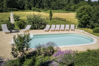 Op het kruispunt Dordogne-Périgord-Quercy, tussen Sarlat en Cahors vindt u dit superleuke vakantiehuis Queduchique. Het huis ligt aan de rand van een gehuchtje vlakbij Léobard. Het huis is zo gesitueerd dat het profiteert van maximale zonneschijn. In de zomer kunt u genieten van de warme avonden bij het zwembad of in de tuin. In het voor- en najaar kunt u zelfs op het terras op het oosten ontbijten: zelfs als de nachten koel zijn, zijn de dagen vaak heerlijk warm.BinnenU komt binnen via de open keuken met woonkamer, gezellig ingericht en met lichte kleuren. In het midden van de ruimte, tussen de keuken en de woonkamer staat een houtkachel. Heerlijk voor de koelere avonden in het voor- en najaar. De keuken is van alle gemakken voorzien. Op de begane grond is er airconditioning.Queduchique heeft 4 slaapkamers waarvan 1 op de begane grond. De overige 3 slaapkamers bevinden zich op de eerste etage. Dan zijn er nog 2 badkamers: 1 op de begane grond en de andere badkamer ligt op de eerste etage.BuitenDit leuk ingerichte vakantiehuis heeft aan alle kanten van het huis een terras. Aan de kant van de keuken is een groot terras met een eettafel en plek voor iedereen in de schaduw. Via de openslaande deuren in de woonkamer komt u op een terras met loungeset. Een pad leidt naar het grote zwembad waar voldoende ligstoelen zijn. U kunt hier heerlijk genieten van de tuin en het uitzicht op de prachtige omgeving.