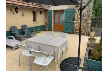 Renovated Stone Gite retaining many attractive original features. Two double bedrooms one offering a double bed with Juliette Balcony and one with Twin beds. Good mattresses, bed linen and overhead lighting, Downstairs there is a Lounge and dining area with two comfortable sofas and dining table for 4 persons, TV & DVD player, WIFI, & Radio. Again good lighting and a breakfast bar with 2 bar stools. The kitchen is fully equipped with Washing Machine, Dishwasher and 4 Hob gas cooker. A Fridge/Freezer plus additional freezer. There is also a kettle, Microwave, Air Fryer, Toaster, Cooking Utensils, Cutlery and crockery and glasses etc.everything needed to enable one to prepare meals indoors and a BBQ with Patio table to enjoy meals outside. Private garden space with loungers and a picnic table and lighting. Downstairs there is a Shower room with toilet, wash basin and urinal. Towels provided.The best part of any holiday is the beautiful salt water Pool 10mx5m which is situated at an elevated level with a small kitchen space, large terrace and loungers, picnic table and the most spectacular views of the valley. Gite guests have 5 hours private use of the pool each day.