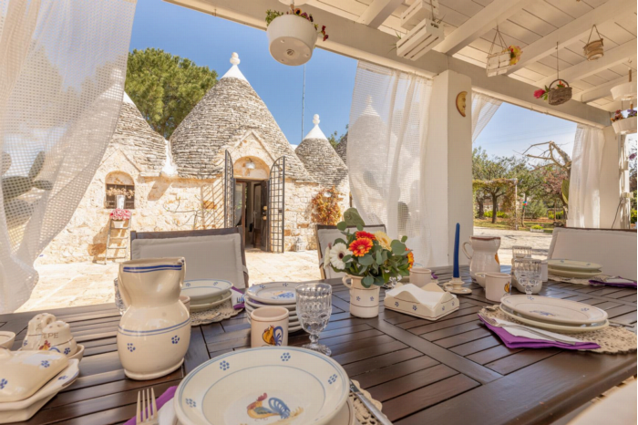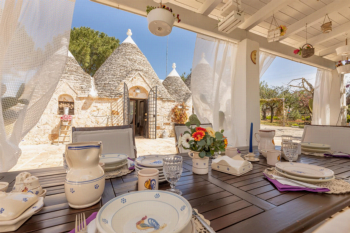 De trullo ligt in het hart van Puglia, nabij Castellana Grotte (ongeveer 3,5 km van het centrum), een charmant stadje dat bekendstaat om zijn indrukwekkende grottenstelsel en authentieke zuid-Italiaanse sfeer. De stad is goed bereikbaar via de weg en is daardoor gemakkelijk toegankelijk voor reizigers die de regio met de auto verkennen. Er is een lokaal treinstation met verbindingen naar nabijgelegen plaatsen zoals Bari, Alberobello en Martina Franca. De dichtstbijzijnde luchthaven is Bari Karol Airport, op ongeveer 60 kilometer afstand. De reis duurt meestal ongeveer een uur en vormt een handig startpunt om de schoonheid en tradities van de Itria-vallei te ontdekken.