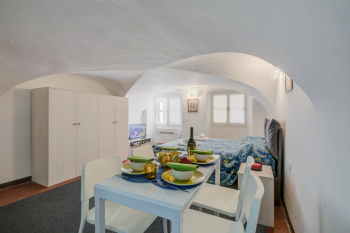 Verblijf in het hart van La Pigna, de charmante oude binnenstad van Sanremo, waar eeuwenlange geschiedenis naadloos samensmelt met het moderne leven. Dit gastvrije appartement op de begane grond bevindt zich in het hart van het historische stadscentrum, op slechts acht minuten lopen van het strand en de levendige boulevard. Het is geschikt voor maximaal vier gasten en beschikt over één slaapkamer en een lichte, comfortabele woonkamer.Genesteld tussen de kronkelende steegjes van Sanremo, combineert het appartement harmonieus de rustieke charme van zijn traditionele buitenkant met een elegant, modern interieur, compleet met gewelfde plafonds die het tijdloze karakter benadrukken.