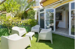 La Mar De Olas Modern huis met charmante terrassen, waarvan één direct aan het zand van La Devesa in Oliva Nova. Het is geschikt voor 4 personen.