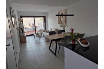 Modern en luxueus appartement met gemeenschappelijk zwembad in San Juan de los Terreros, Andalusië, Spanje voor 4 personen. Het appartement is gelegen in een vakantieresort, in een residentieel en bergachtig strandgebied, dicht bij supermarkten en op 200 m van het strand.Het appartement beschikt over 2 slaapkamers en 2 badkamers. De accommodatie biedt een prachtige, met gras begroeide tuin met grind, een gemeenschappelijke tuin met bomen en een prachtig uitzicht op de zee. Het comfort en de nabijheid van het strand, winkelmogelijkheden, sportactiviteiten, entertainmentfaciliteiten, bezienswaardigheden en cultuur maken dit tot een fijn appartement om uw vakantie in Spanje door te brengen met familie of vrienden.Interieur van het appartementwoonkamer met airconditioning en televisieeetkamer2 slaapkamers en 2 badkamerskabeltelevisiewasruimte met wasmachine en drogerDe verdieping is alleen toegankelijk van buitenaf.Keukenopen keuken met elektrische kookplaat, elektrische oven, magnetron, vaatwasser, koelkast-vriezer, koffiezetapparaat, waterkoker, toaster en citruspersSlaapkamers en badkamersslaapkamer met airconditioning, queensize bed (met afmetingen 200 bij 160 cm) en en-suite badkamerslaapkamer met airconditioning en 2 eenpersoonsbedden (met afmetingen 200 bij 80 cm)en-suite badkamer met wastafel, douche, toilet en haardrogerbadkamer met wastafel, douche en toiletBuitenruimte van het appartementomheind perceelgemeenschappelijk zwembadkinderen's zwembadmooie, met gras begroeide tuin met grind en tuinmeubelen met ligbeddengemeenschappelijke tuin met bomenspeelplaats2 terrassen, waarvan 1 overdekt isbuitenkeukenbuiten douchebuiten zithoek en buiten eethoekprivé omheinde overdekte parkeerplaatsdakterrasMeer informatiedichtstbijzijnde stad: San Juan de los Terreros (binnen 1000 meter van het appartement)dichtstbijzijnde rivier of kust binnen 200 meter van het appartementdichtstbijzijnde strand binnen 200 meter van het appartementdichtstbijzijnde haven: Villaricos (binnen 10 kilometer van het appartement)dichtstbijzijnde luchthaven: Almeria/Murcia (binnen 100 kilometer van het appartement)tweede dichtstbijzijnde luchthaven: Alicante (> 100 kilometer)nabij openbaar vervoer: bus binnen 100 meter en trein binnen 15 kilometerroken niet toegestaanhuisdieren zijn niet toegestaanHet gebouw waar de accommodatie zich bevindt, heeft een lift.De accommodatie is zeer geschikt voor gezinnen met kinderen, fotosessies en yogasessiesPrivévoorzieningen en -diensten inbegrepen in de huurprijsinternet (WiFi)stofzuiger en strijkijzer en strijkplankbedlinnen en handdoeken24-uurs nooddienstluchtverwarmingGemeenschappelijke voorzieningen en diensten inbegrepen in de huurprijsbuiten jacuzziPrivévoorzieningen en -diensten tegen extra kostenverwarming van het zwembadGemeenschappelijke voorzieningen/diensten tegen extra kostenfitnessruimte, tennisbaan en paddlebaanVermaak en recreatieve activiteiten voor uw vakantie in San Juan de los Terreros, Andalusiëbar (binnen 500 meter van het huis)promenade (binnen 1000 meter van het huis)waterpark (Agua Vera) (binnen 10 kilometer van het huis)Bezienswaardigheden en cultuur in San Juan de los Terreros, Andalusiëruïne (binnen 1000 meter van de accommodatie)kasteel (Kasteel San Juan de los Terreros), monument (La Geoda) en historische plaats (binnen 5 kilometer van de accommodatie)museum (Ã guilas), kerk (Ã guilas) en architectonisch gebouw (binnen 25 kilometer van de accommodatie)Sportwandelen, mountainbiken, fietsen, kanoën, duiken, snorkelen, surfen en windsurfen (binnen 1000 meter van het appartement)golf (Ã guilon Golf) (binnen 5 kilometer van het appartement)
